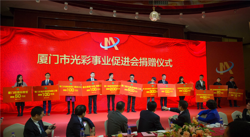 2014年底,厦门市光彩事业促进会于正式成立。两年多来,市光彩事业促进会在市委统战部、市民政局、市工商联和省光彩会的指导以及广大会员企业积极参与下,取得了一些工作成效,成立以来共发动总商会会员企业捐款430多万元,并开展了多场助学、帮困等慈善公益活动。就职典礼现场,一批热心的企业家对市光彩事业促进会进行捐赠。