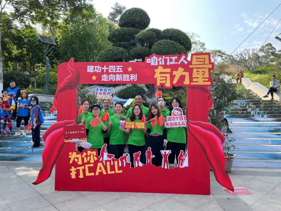 本次活动共有湖里区在职劳模、“工人先锋号”、工会干部等组成的 27 支队伍、近 300 人参加,中绿集团被编列为“工人先锋号十六队”。整场健步行活动共设置五星高照、同舟共济、重温长征、学习党史、唱响未来等趣味打卡游戏环节,将党史学习教育融入其中,为活动增添知识性和趣味性,也让队员们在重温党的百年光辉历程的同时,增进团结和友谊。
