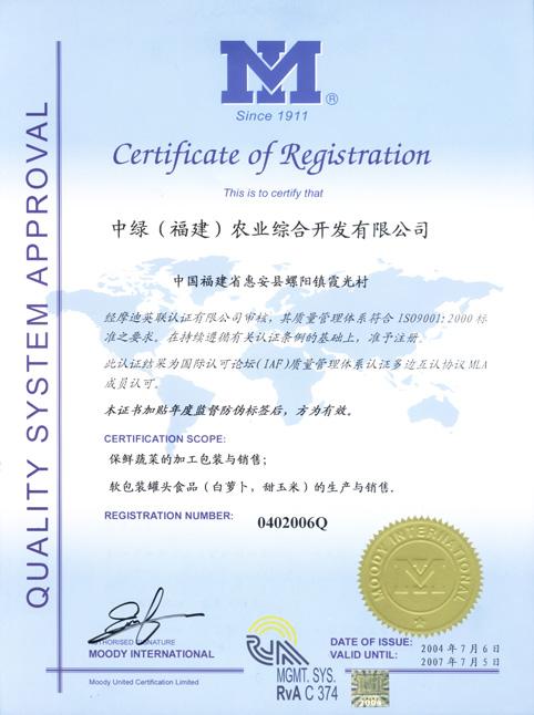 ISO9001:2000是国际质量管理体系认证的标准,适用的行业范围广泛。而食品安全管理体系(HACCP)与食品生产企业更是密切相关。随着质量认证制度被世界上越来越多的国家和地区所接受,逐渐成为国际惯例。与此同时,人们对食品安全卫生日益关注以及HACCP在食品安全控制方面的卓著成效倍受全球瞩目。早在2004年,中绿集团就已经开展了ISO9001:2000和HACCP管理体系的认证工作,主要的子公司已通过了认证。孙总裁说:此次中绿集团启动大规模再培训和落实工作其意义有三。首先,两项认证在强化中绿品质管理,提高企业效益,增强客户信心,扩大市场份额方面均能取得立竿见影的功效。通过认证不仅说明企业的产品质量符合国际标准,还进一步证明这个企业的整体管理水平达到了国际水准。它对提高企业产品的市场竞争力和企业品牌市场效应将带来极大的作用。