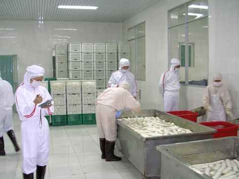 中绿一向重视加工厂房的建设,目前拥有现代化工业厂房千余亩,建筑面积超过55000平方米,超过20条现代化农产加工设备,主要分布在福建、江西、湖北、河北和浙江等地。生产车间内卫生要求严格,均配备防蝇、防虫、防鼠、防尘设施,做到每天清扫角落暗道的边角卫生。上、下班时间对车间内工具、包装进行安全消毒。对生产人员也有极为严格的要求:所有生产人员都要定期体检,要求做到四勤即勤洗、勤换、勤理、勤剪;在进入生产车间之前,生产人员需要经过:换拖鞋-穿雨鞋-更衣-手消毒-烘干手-雨鞋消毒等环节,才能进入深加工车间。公司制定了完善的卫生管理制度,并坚持认真执行,使每个员工都形成了良好的卫生意识、实现深加工车间的无菌化管理。 严格规范的生产环节,国际标准化的运做模式是公司向市场供应最优、最鲜绿色果蔬产品的保证。