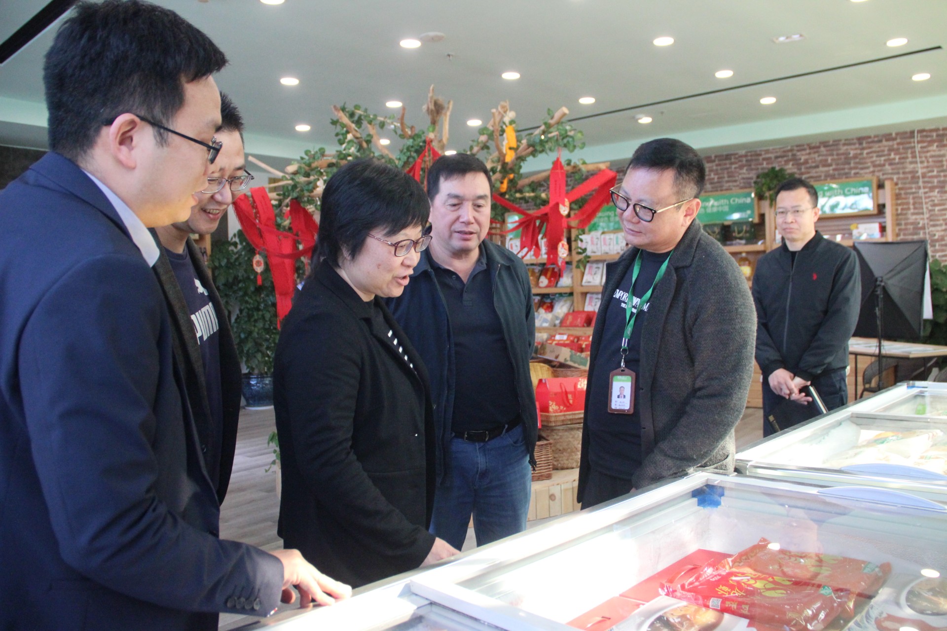 在中绿生活馆,孙董向天门市委副书记、市长杨兴铭一行介绍了“田园生活”“御膳良品”“实吾酒”等中绿系列品牌,并详细介绍了来自湖北天门养殖基地的御膳良品小龙虾,双方就此饶有兴致的展开探讨。