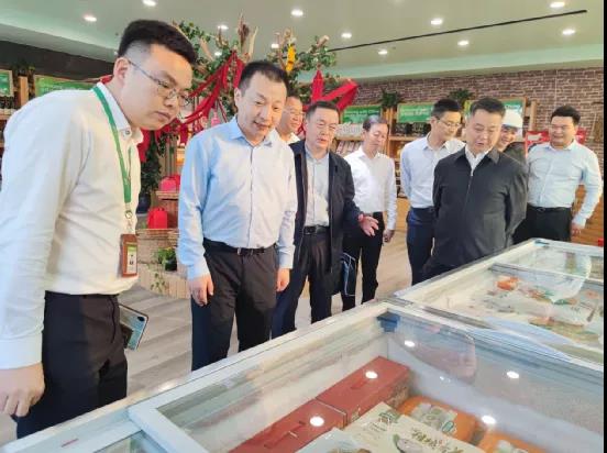 在中绿生活馆内,中绿集团相关部门负责人向南漳县县长陈栋一行介绍了中绿的系列品牌产品,并详细介绍了中绿在湖北小龙虾种植基地生产的御膳良品小龙虾。
