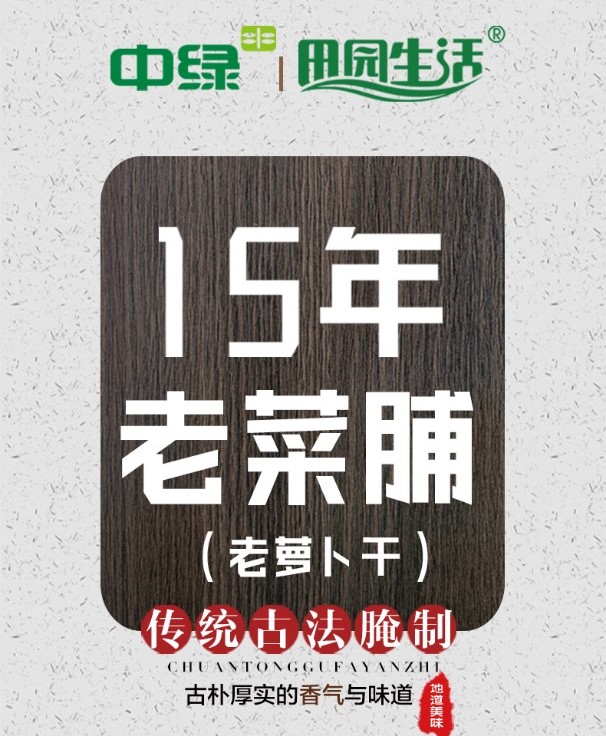 这款15年老萝卜干是中绿“田园生活”产品线推出的新品之一。这款老萝卜干选用生态种植的白萝卜,使用古法腌制,工艺较为繁琐。经过晾晒、搓去水分、浸泡、再揉搓、晾晒等步骤,最终将原料入瓮用黄泥封口,并入窖中陈放,才能形成出老萝卜干独特的香味。无论是配粥、炖汤、炒菜都能呈现令人难忘的独特风味,且对一些常见病还有预防作用。据相关药学记载,老菜脯汤系具有抗癌效果,且对胃肠病、高血压、关节炎、肝病、心脏病、视力减退等症状均有相当助益。同时,还可解毒、解酒、治咳,还可改善心肌梗塞、心血管疾病等。此等康养好礼,非常适合走亲访友,送礼的同时,更带去健康和关爱。