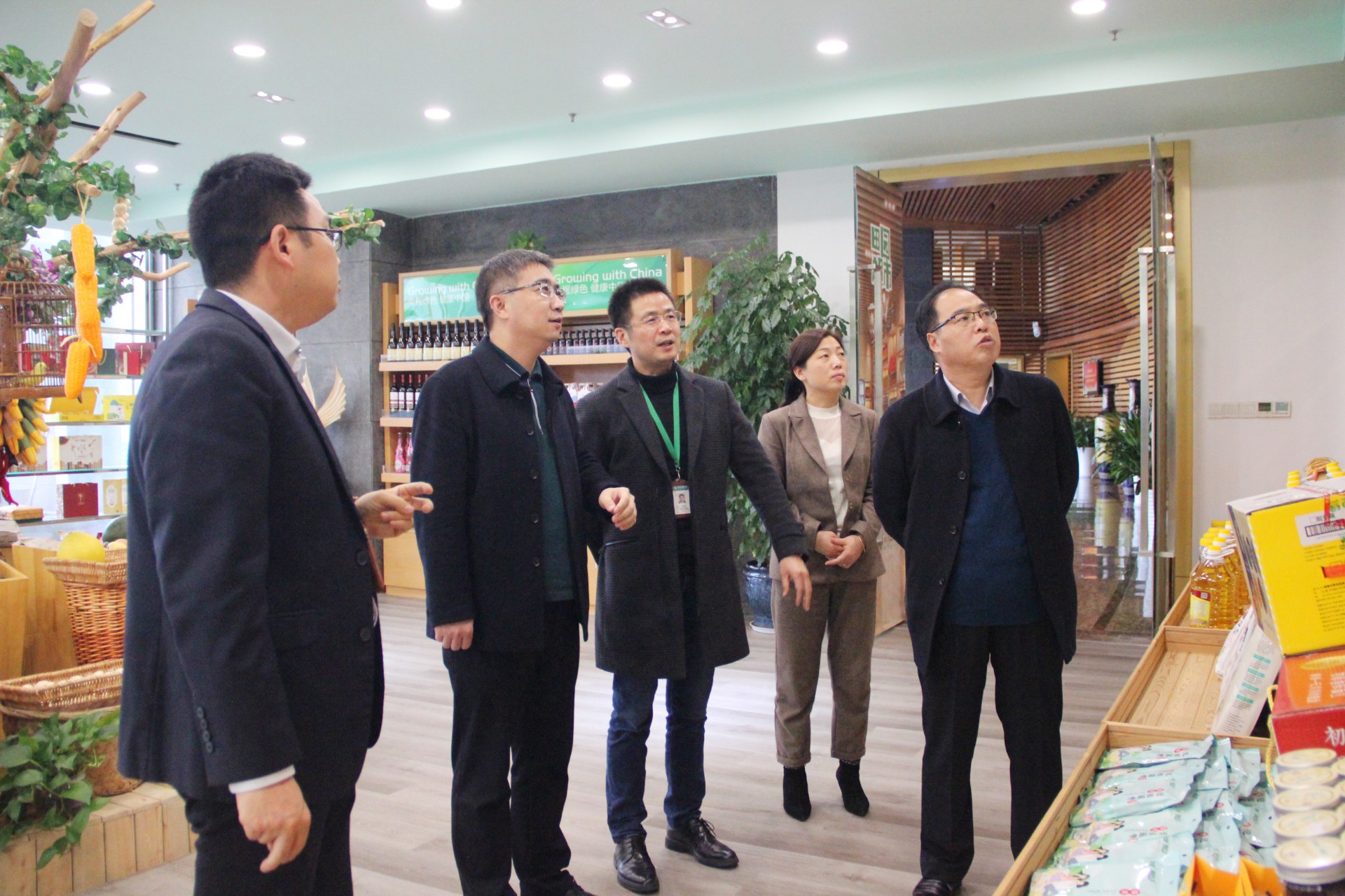 在集团大堂一楼中绿生活馆内,中绿集团主要领导向湖北省宜昌市人大副主任、长阳县委书记赵吉雄一行介绍了中绿的系列品牌产品,并详细展示了中绿田园生活系列江西米粉、中绿御膳良品小龙虾、中绿15年老菜脯等热卖产品。