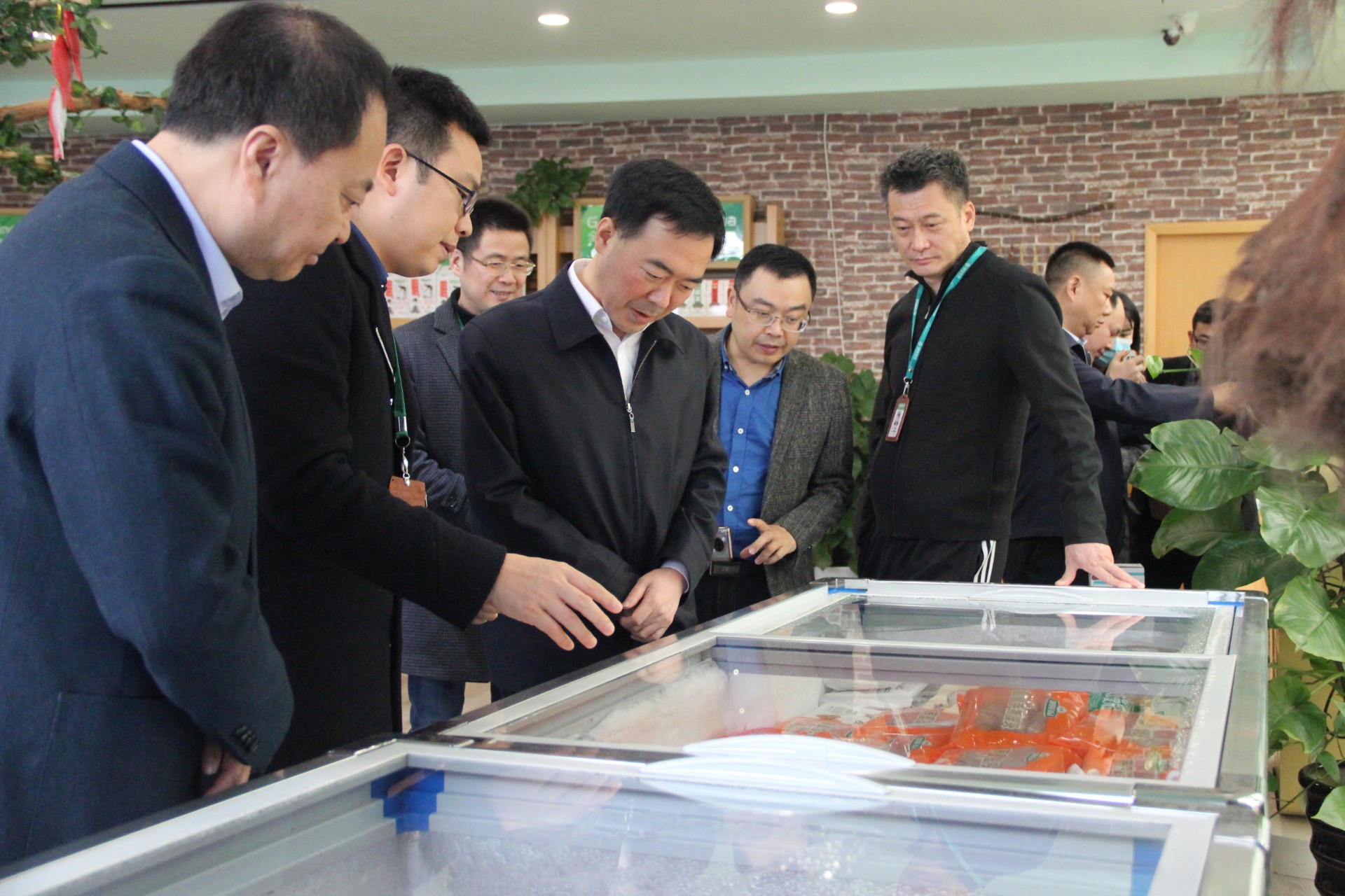在集团大堂一楼中绿生活馆内,中绿集团相关部门负责人向四川省广元市副市长伍荣华一行介绍了中绿的系列品牌产品,并详细展示了中绿御膳良品小龙虾、中绿15年老菜脯等热卖产品。